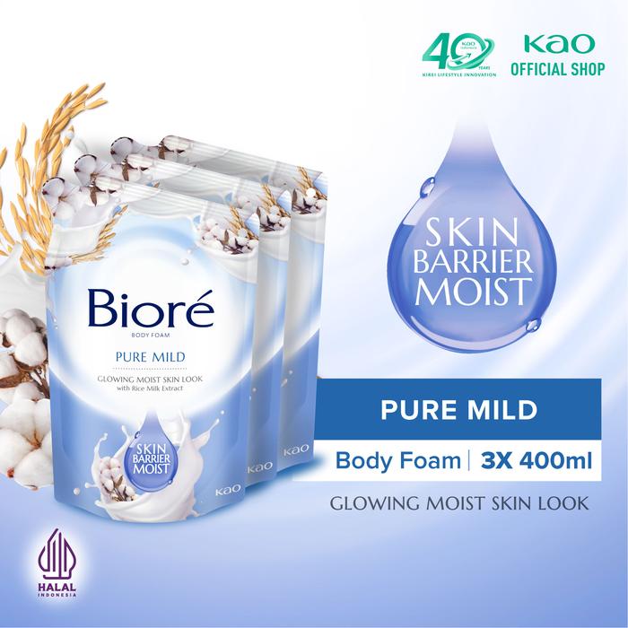 Biore Pure Mild 400ml Pouch Triplepack - Sabun Mandi Cair