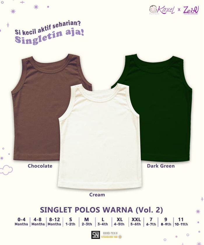 KAZEL x ZEBE Singlet/Tanktop Polos Putih/Warna Unisex (Lusinan) Vol.2 - Singlet Polos Warna Vol.2 Isi 6 0-4