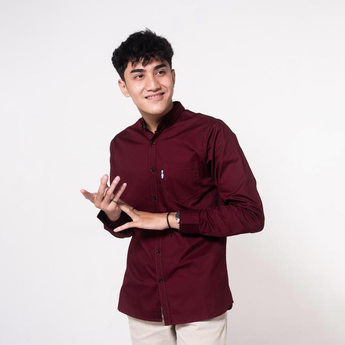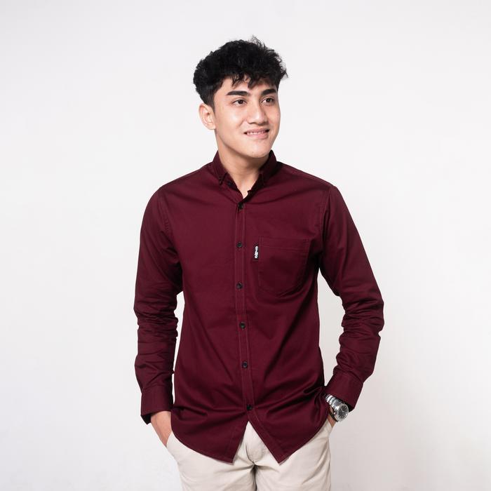 Gizmo - Kemeja Pria Basic Cotton Premium Maroon Baju Casual - Maroon M