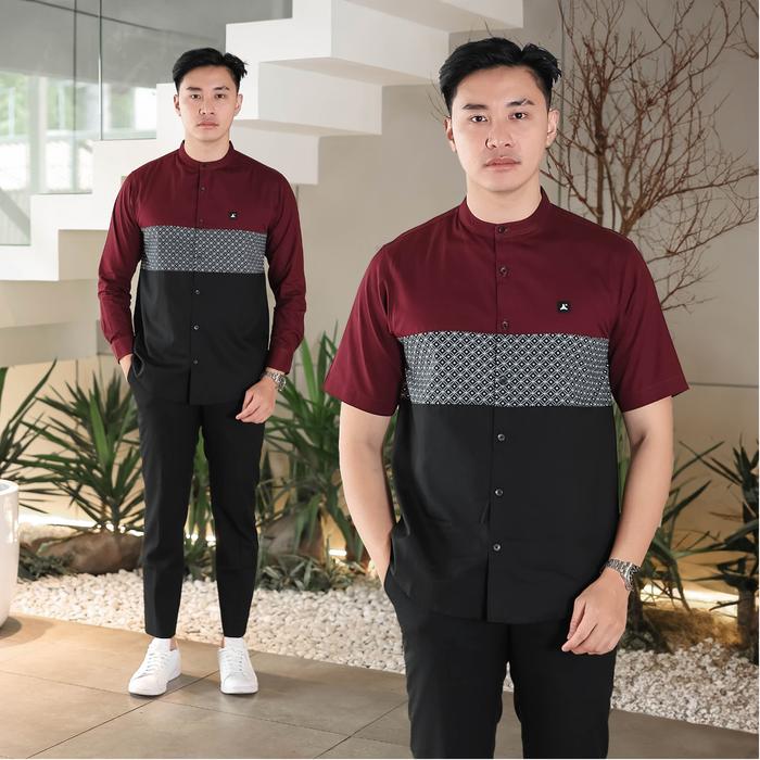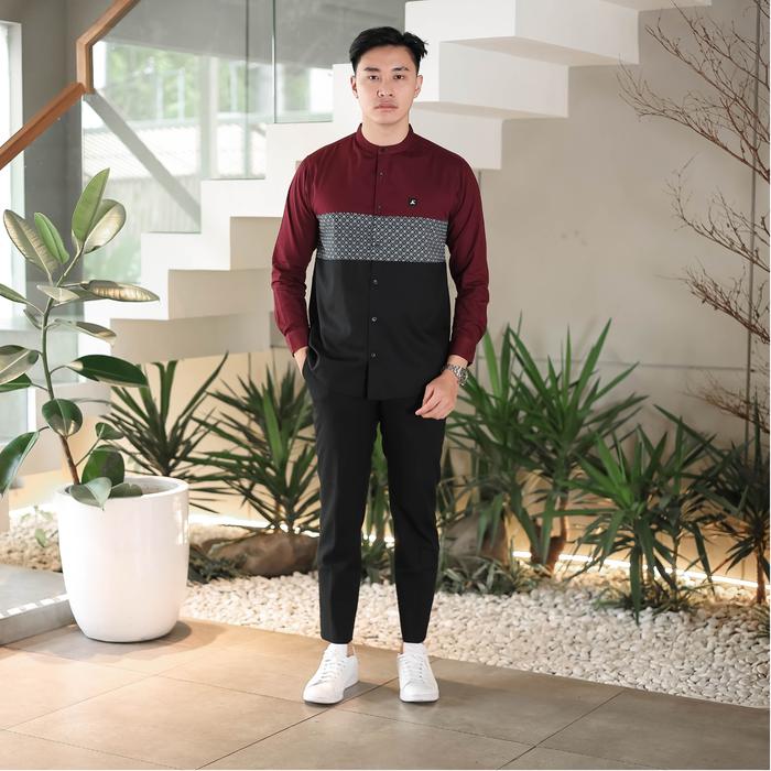 ANCSTR Kemeja Pria Shanghai Aplikasi Motif Premium - Ruby - Panjang S