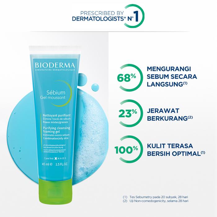 Bioderma Sebium Gel Moussant 45 ml - Facial Wash untuk Kulit Kombinasi / Berminyak / Berjerawat