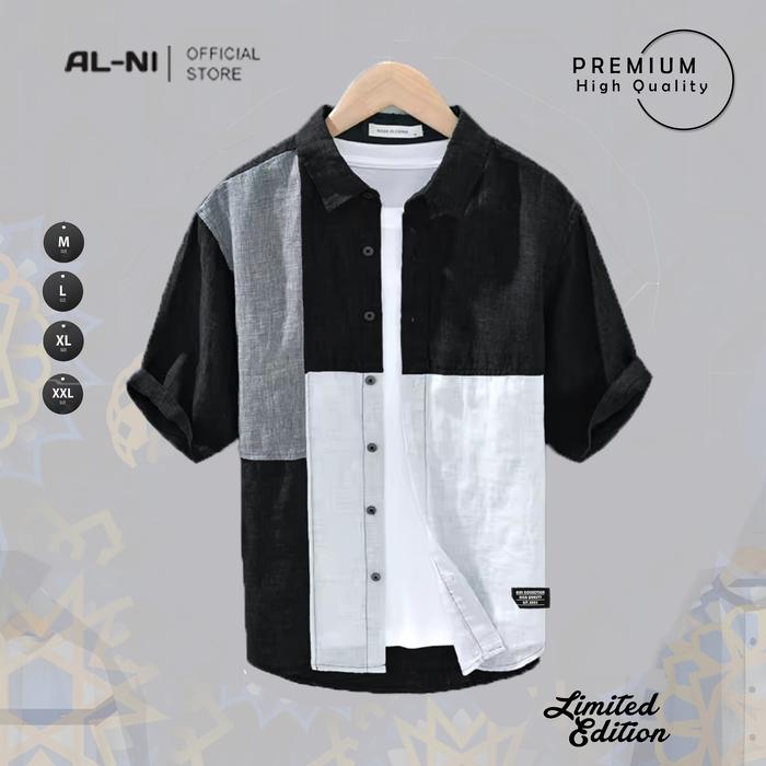 ALNI OFFICIAL STORE - LINO KEMEJA PRIA LENGAN PENDEK KASUAL BAHAN ADEM PREMIUM HIGH QUALITY - Denim M