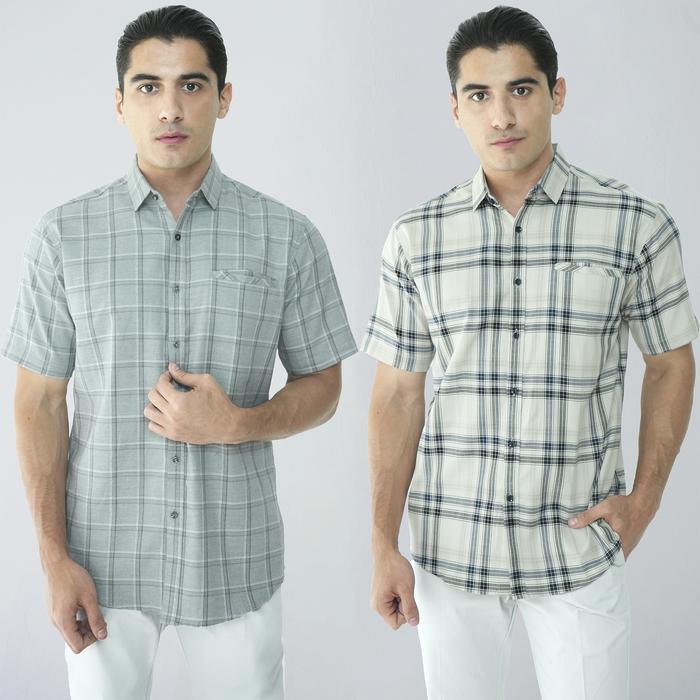 Casella Kemeja Chicago Pria Lengan Pendek Exclusive Motif Kotak Baju Casual - 2341 Shadow Grey S
