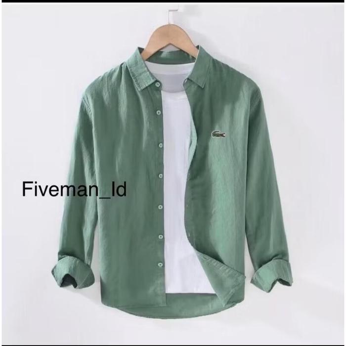 Kemeja Pria Polos Slimfit Lengan Panjang Katun Premium Kemeja Kantor Biru Casual Laris Formal - Sage M
