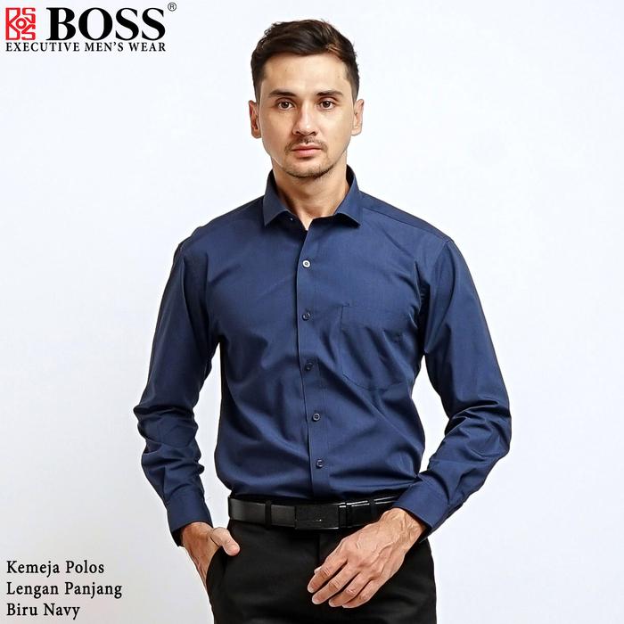 BOSS Kemeja Polos Pria Lengan Panjang Biru Navy - 14 / XS Regular Fit