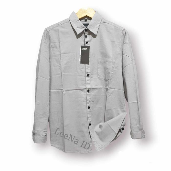 Kemeja Casual Pria Panjang Premium Polos Katun Twill - Kemeja Lengan Panjang Formal Slimfit - light grey M