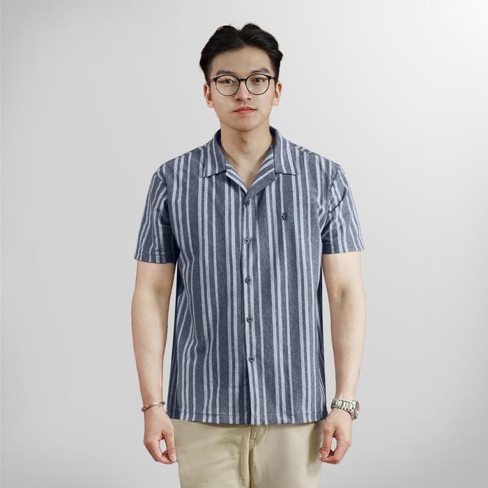 Matsuda Sunagawa Navy Mel Kemeja Pria Stripe Lengan pendek - NAVY MEL L (LD 112 CM)