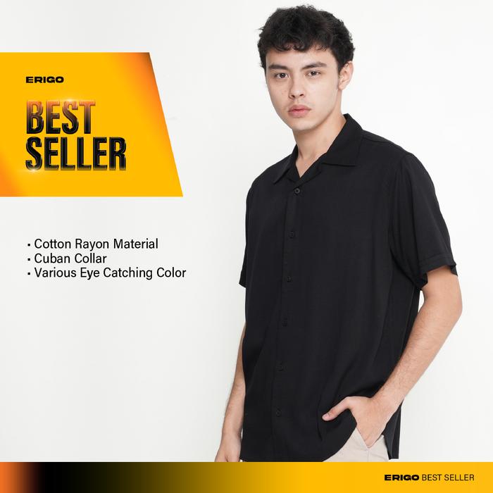 Erigo Short Shirt Jazlyn Black - Kemeja Lengan Pendek Rayon Unisex - Jazlyn Black S