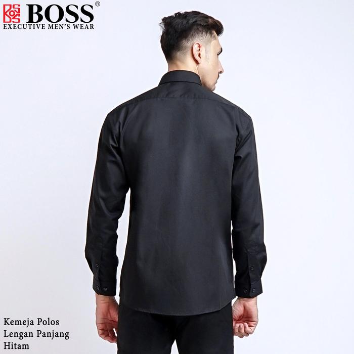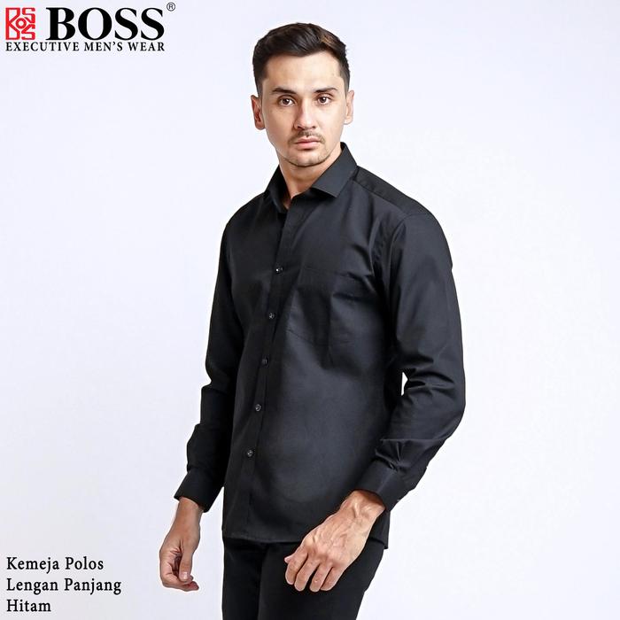 BOSS Kemeja Polos Pria Lengan Panjang Regular Fit Hitam - 14 / XS