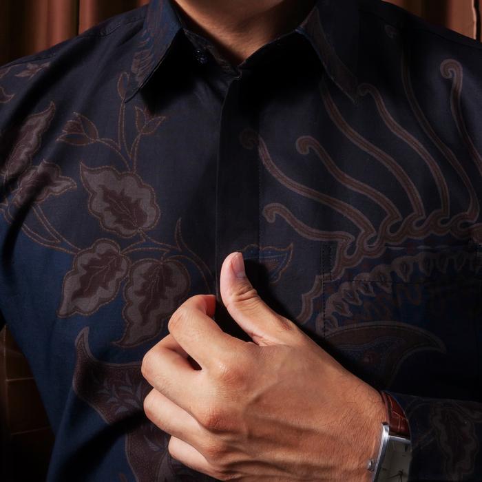 Enzy Batik Kemeja Batik Pria Slimfit Senapati - Black - S Tanpa Tricot