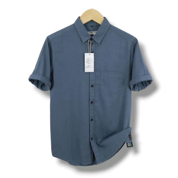 Kemeja lengan pendak pria Kemeja katun lengan pendek pria Distro - Blue denim M