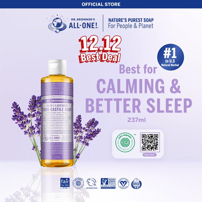 Dr. Bronner's Liquid Soap Lavender Pure Castile 237ml Sabun Cair Organik