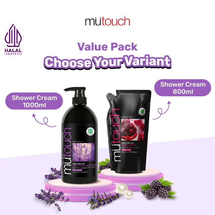 PAKET MuTouch Shower Cream 1000ml + MuTouch Shower Cream 800ml - Sabun Mandi - 1L Honey 800ml Habbatus