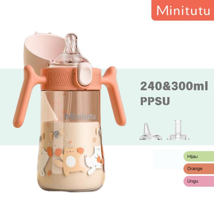 Minitutu 3in1 PPSU Botol Susu Bayi Botol Minum Praktis Anti Tumpah Botol Susu BPA Free BB30 - 3in1 Hijau 240ml