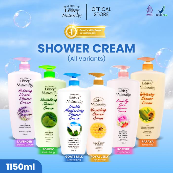 Leivy Body Wash Sabun Mandi Shower Cream Goats Milk - 1150 ml Pump - 1150ml Goats+Serum-Love
