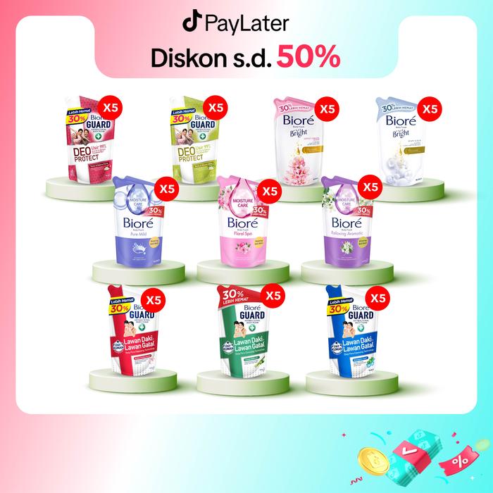 [PROMO ISI 5] Biore 800ml/750ml Pouch Refill Fivepack - Sabun Mandi Cair - Relaxing Aromatic
