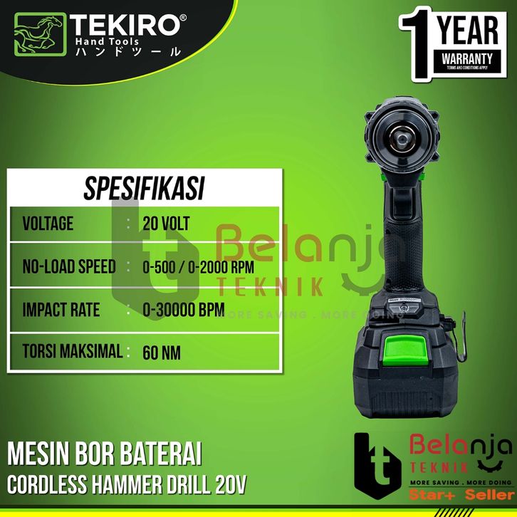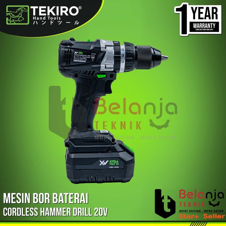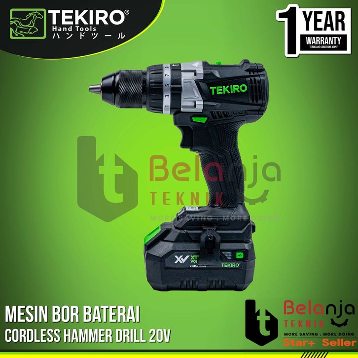 Tekiro Mesin Bor Baterai XV 20V Brushless 13MM Cordless Hammer Drill