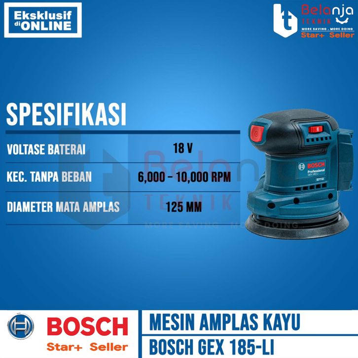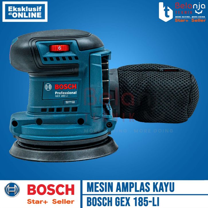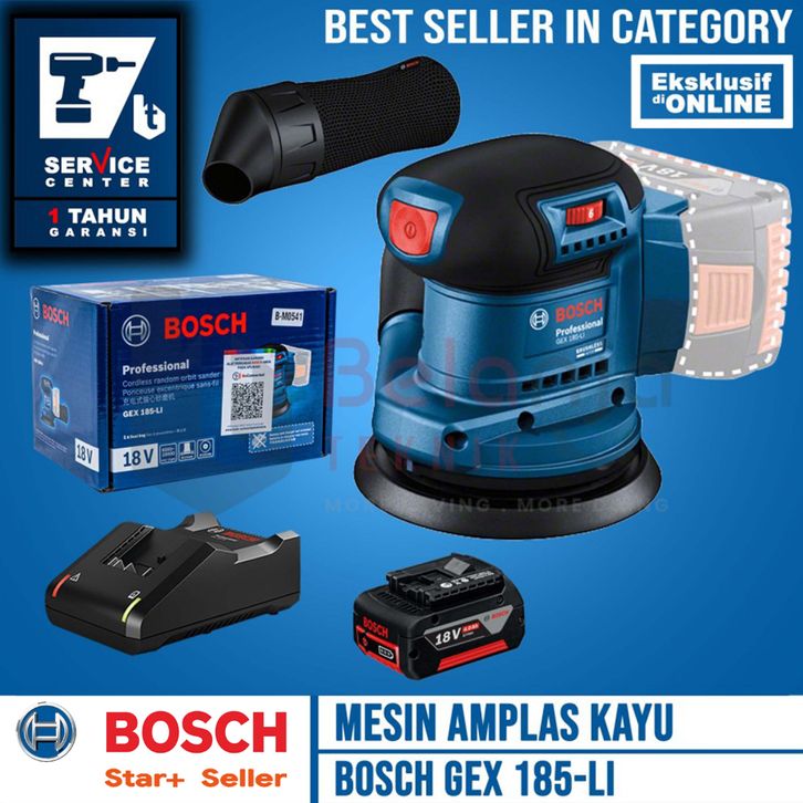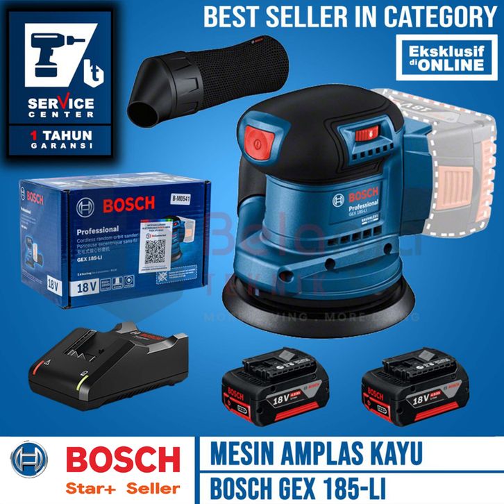 Bosch Mesin Amplas Kayu Baterai GEX 185-LI Orbital Sander 5 In Set 18V 4 AH