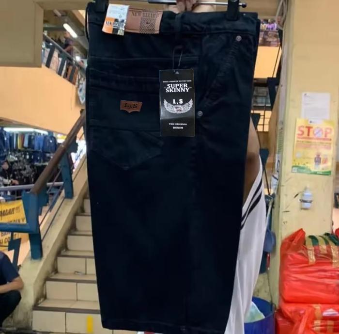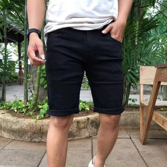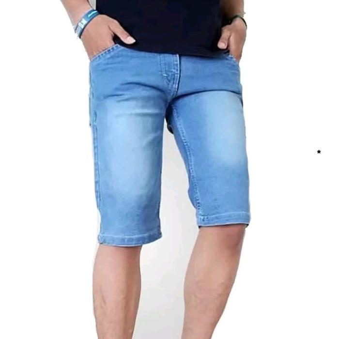 Celana Jeans Pendek Pria Melar Hitam - Denim Stretch - Dewasa Biru Muda Navy