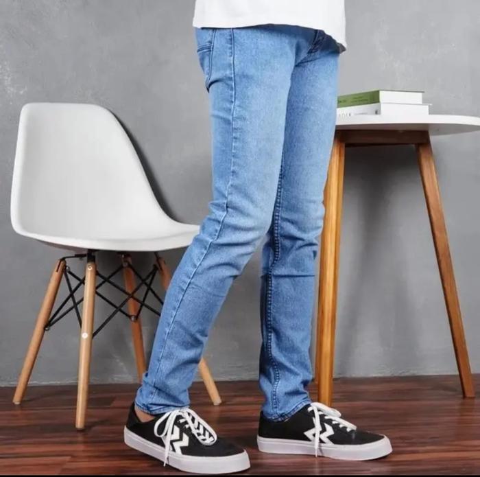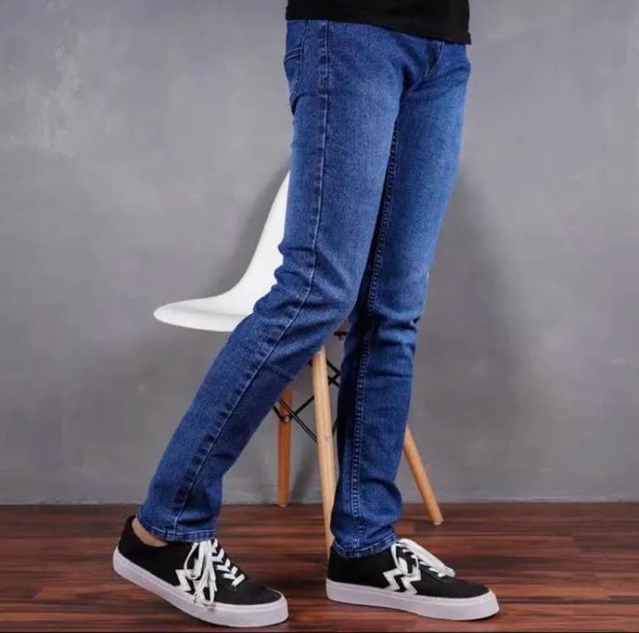 Celana Jeans Panjang Abu Grey Stretch Melar Cowok Nyaman Slimfit Slim Fit Hitam Navy