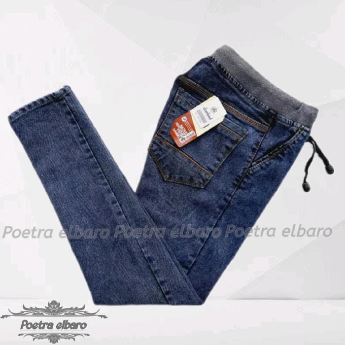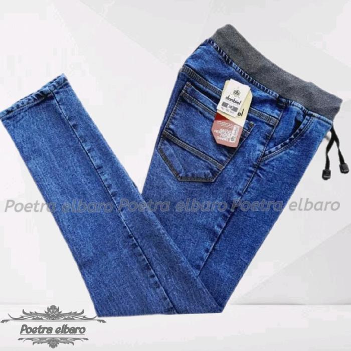 Celana Jeans Pinggang Karet Pria Rip Pinggang Elastis