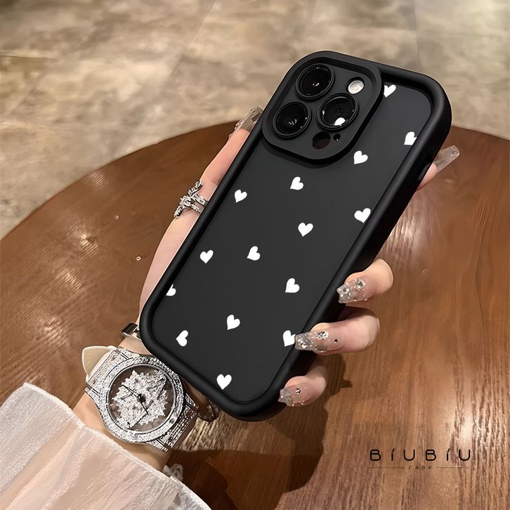 Premium Softcase Fullcover Casing Iphone 11 13 12 14 15 Pro Max Xr Xs Max 7Plus 8Plus Se 7 8 6 6 S Plus White Heart Phon