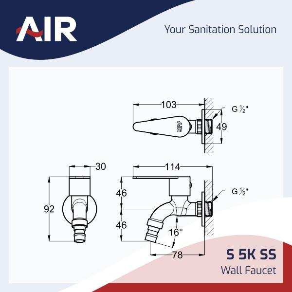 AIR Kran Air Keran Tembok Wall Faucet S 5K SS
