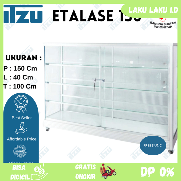 etalase kaca jualan Etalase Kaca Alumunium 150 Cm / Etalase Kaca Jualan 150 cm dengan Roda dan Kunci