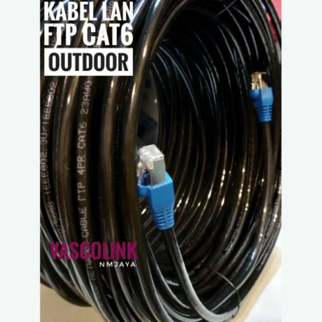 Kabel Lan Outdoor 40 Meter FTP CAT6 Siap Pakai Dicrimping rj45 besi dan plugbooth Vascolink Hitam