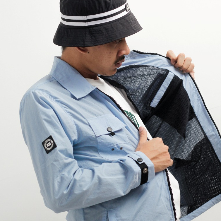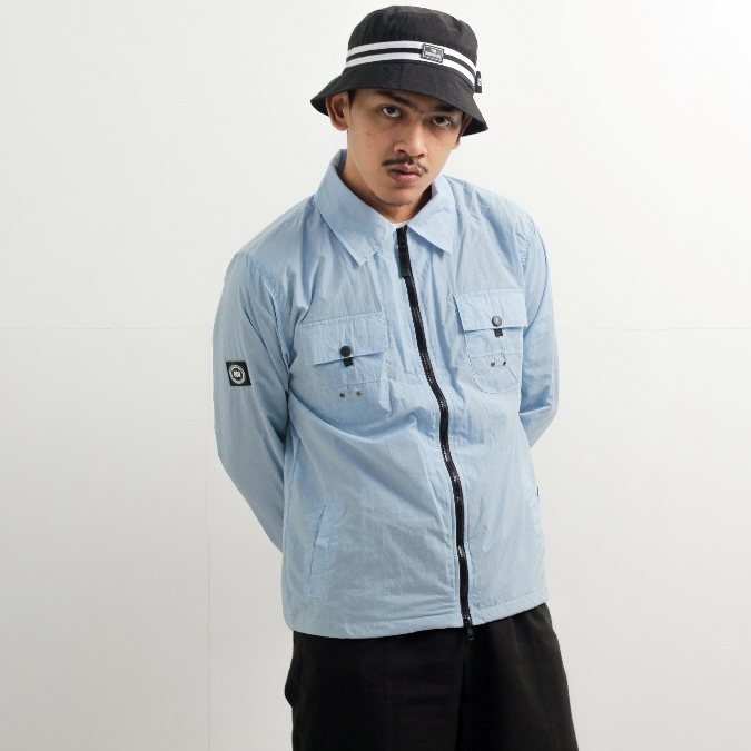 troublemaker obsessed jaket pria wanita gorpcore waterproof Overshirt Jacket Connoisseur Ice Blue jaket trouble maker