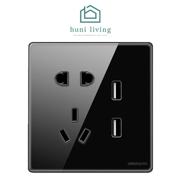 Saklar / Sakelar Lampu Hitam Black Glossy 1/2/3 Gang Electrical Switch 2 Way Engkel Hotel 2 Arah Bahan Akrilik