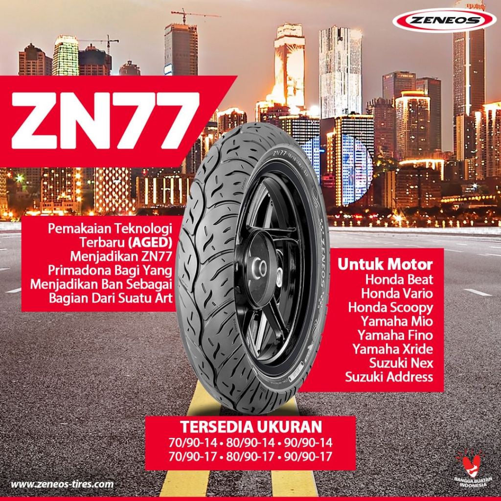 Ban Motor Zeneos Beat Ring 14 17 Tubeless Sepasang Ban Zeneos Zn77 Ring 14 70/90-14 80/90-14 90/90-14 Zeneos Ring 14