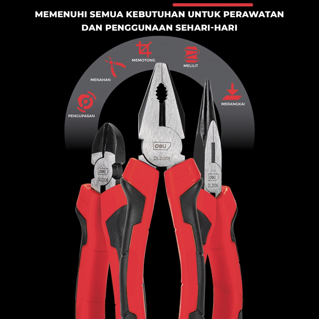 Allefix Tang Set 3PCS Tang Kombinasi Tang Lancip Tang Potong Multifungsi-6629