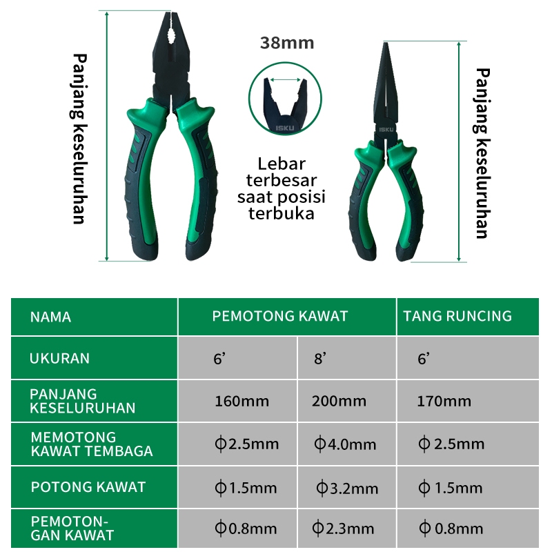 ISKU Tang Combinasi Kombinasi Tang Kawat Multifungsi 6 inch Dan Tang Lancip 6 Inch Dan Tang Potong 6 Inch Pliers Set Pe