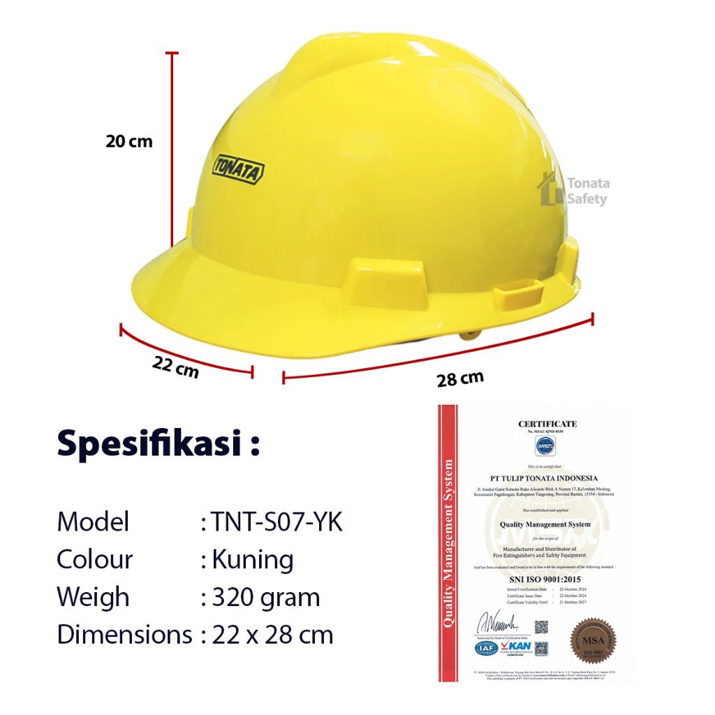Tonata Safety Helmet Heavy Duty Helm Proyek Inner Fast Track Klop Putar Kuning