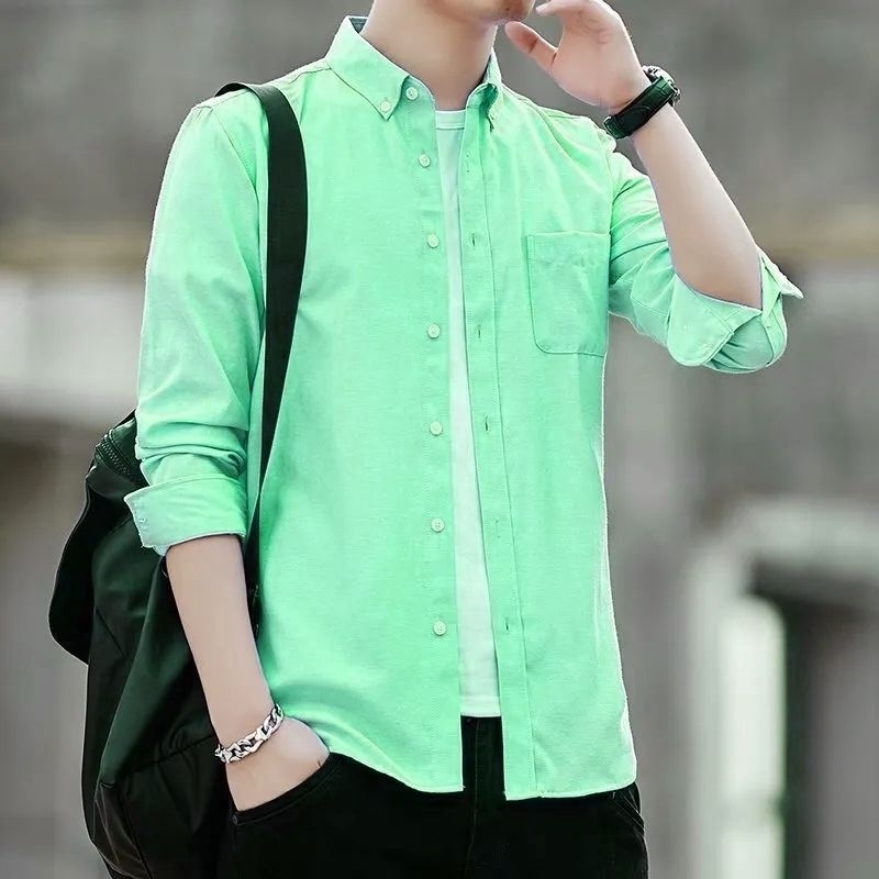 NAUGTY - Baju Kemeja Pria Atasan Terbaru Lengan Panjang Polos Katun Premium Slimfit Formal Kekinian