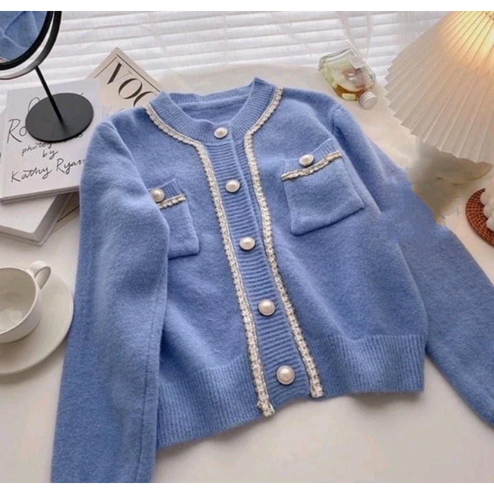 CARDIGAN WOL RAJUT WANITA KNITWEAR KOREAN STYLE LIST FULL MUTIARA