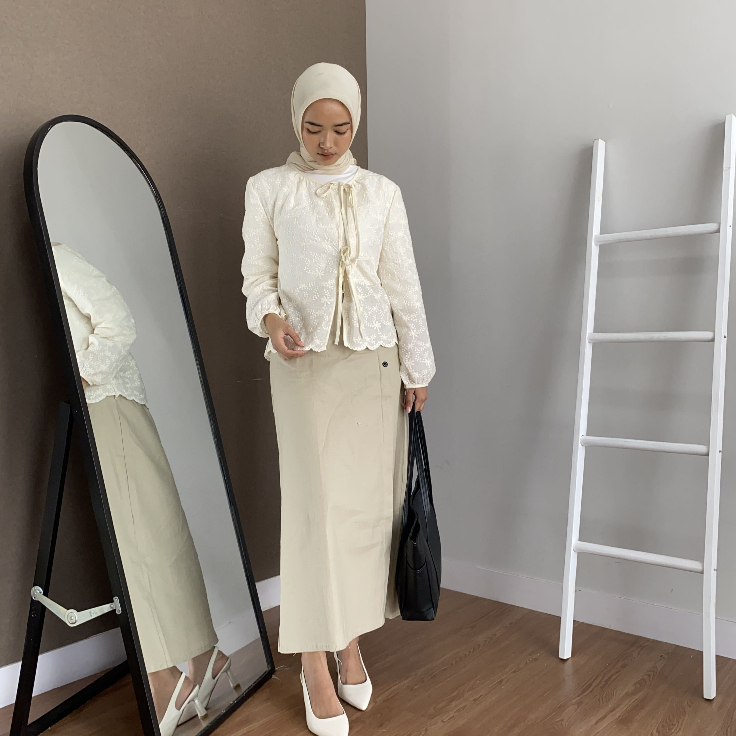 blouse atasan wanita lengan panjang motif bunga hijab friendly