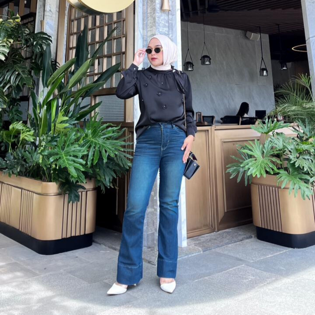 Highwaist Cutbray Jeans Celana Panjang Stretch Wanita Retro Vintage Kain Lipat