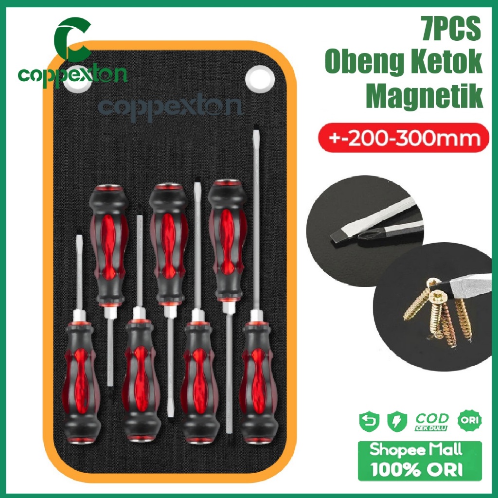 Coppexton Set 7 obeng ketok dengan obeng berbentuk salib hati dengan port datar bunga plum untuk perbaikan mobil rumah t
