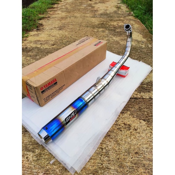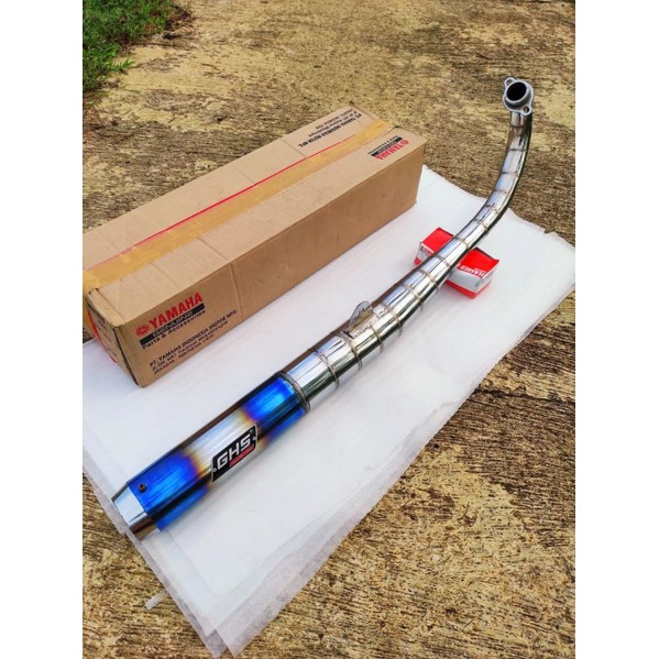 Kenalpot Knalpot GHS RX KING Standar Racing Chrome Cacing Ujung Biru Super Garing Istimewa