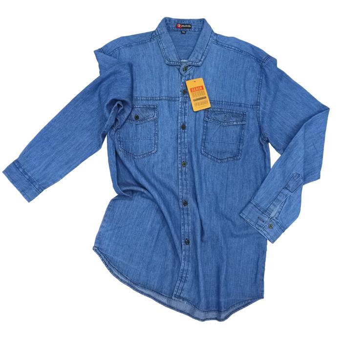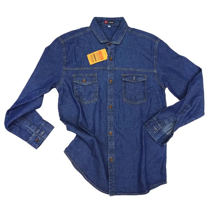 Kemeja Jeans Pria Lengan Panjang Denim Kasual Biru