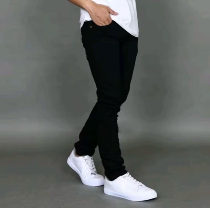 Celana Jeans Pria Denim Celana Pensil Cowok Celana Jeans Hitam Pekat