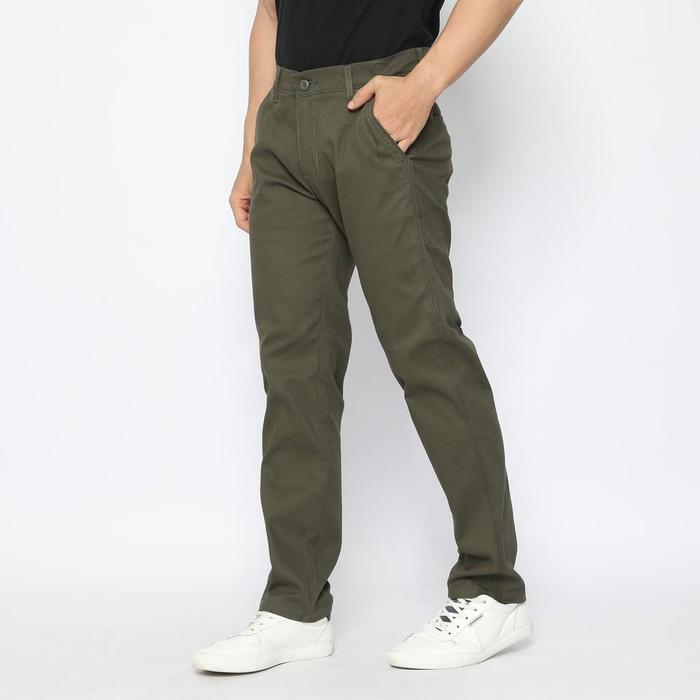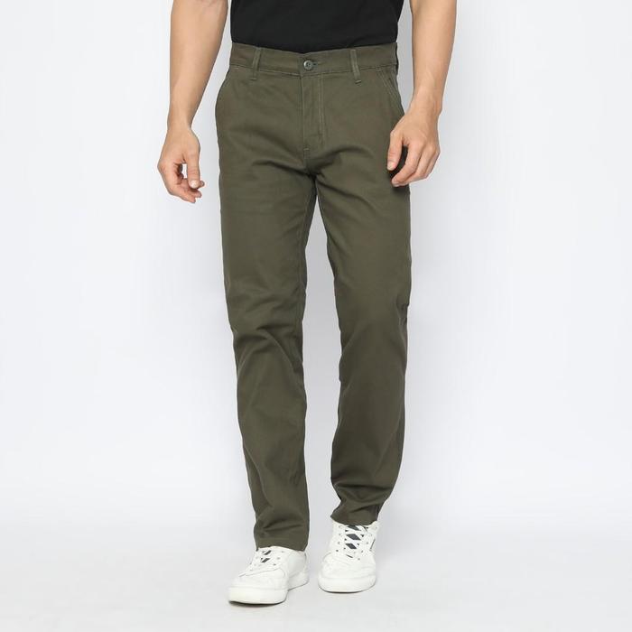 FICHINO CHINO PANTS HIZAN OLIVE SLIM FIT - BELLEVUE SERIES PANJANG STRETCH PRIA CELANA KATUN TWILL - 36, OLIVE