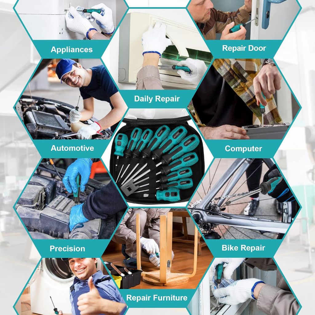 Obeng Set Kepala Magnet Tas Obeng Magnet Set Plus Minus Magnetic Head Screwdriver Set 6 9 10 13 pcs
