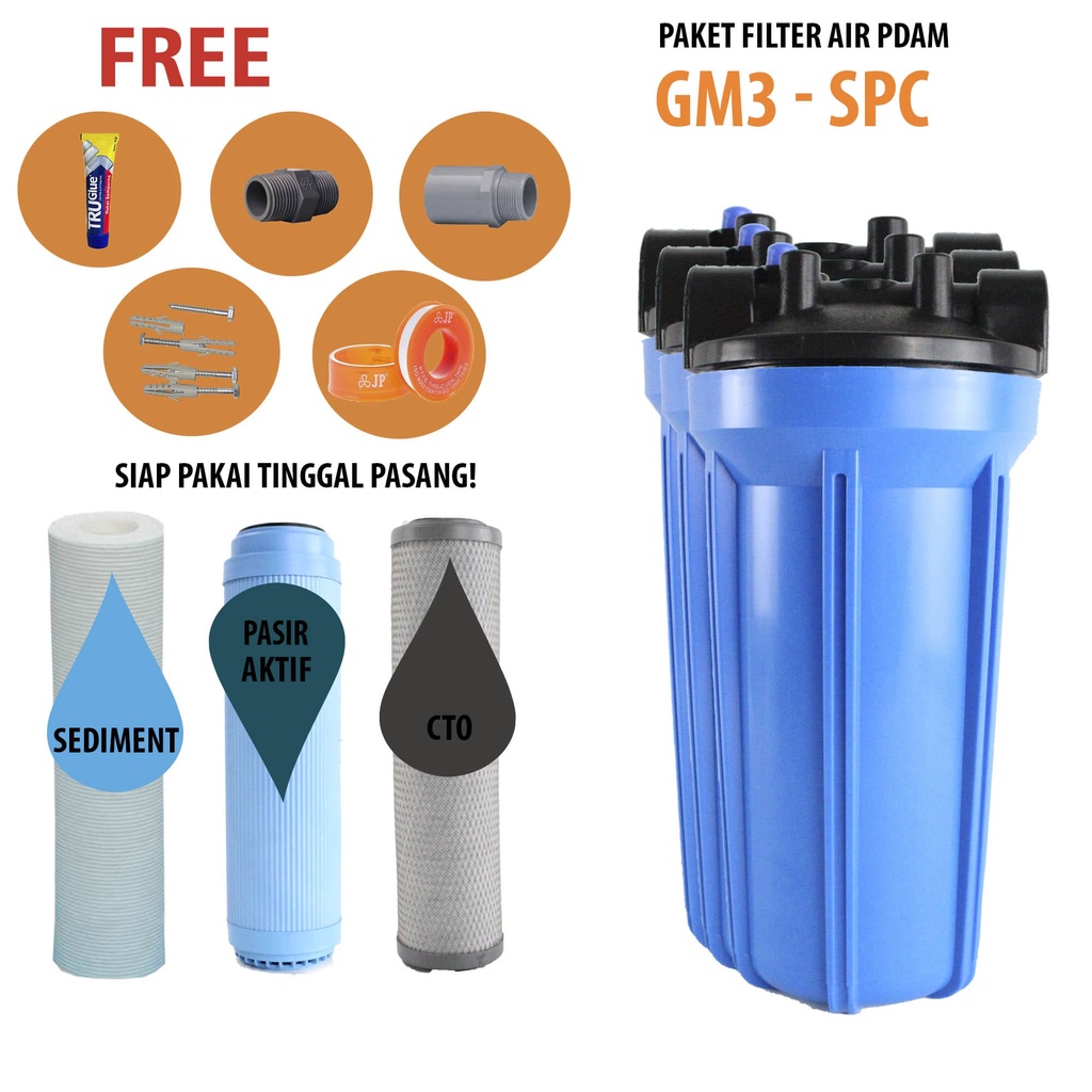 Paket Filter Air 3 Tahap SPC / Filter Air Sumur / Filter Air Zat Besi / Kuning / Berkarat