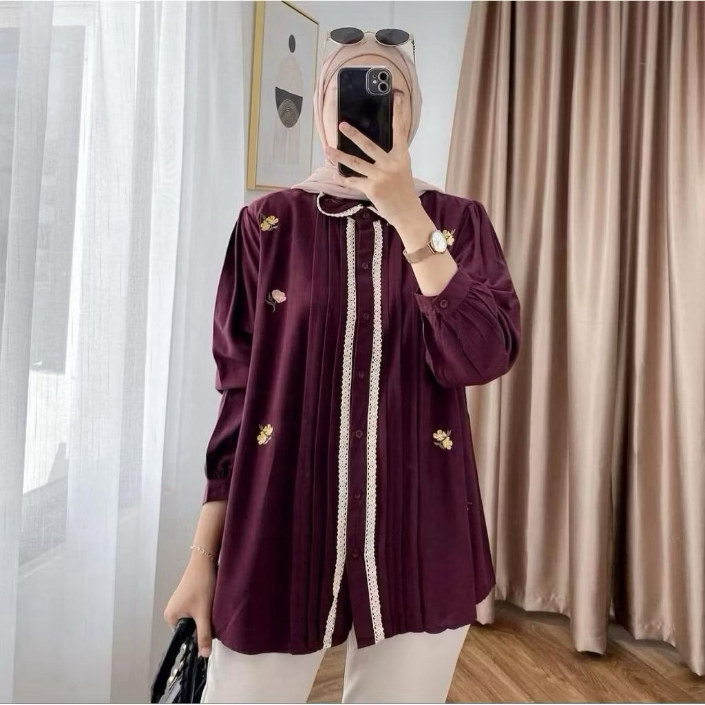 Natasya Blouse Bordir Linen Premium – Kemeja Wanita Lengan Panjang Elegan Allsize