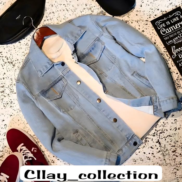 JAKET JEANS DENIM POLOS UNISEX Nyaman Panjang