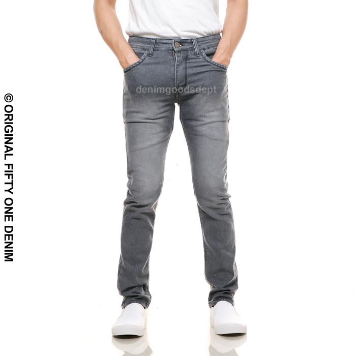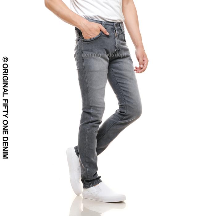 Celana Jeans Pria Panjang Slim Fit Premium Baru Distro Bahan Denim Stretch Melar Warna Grey Wash