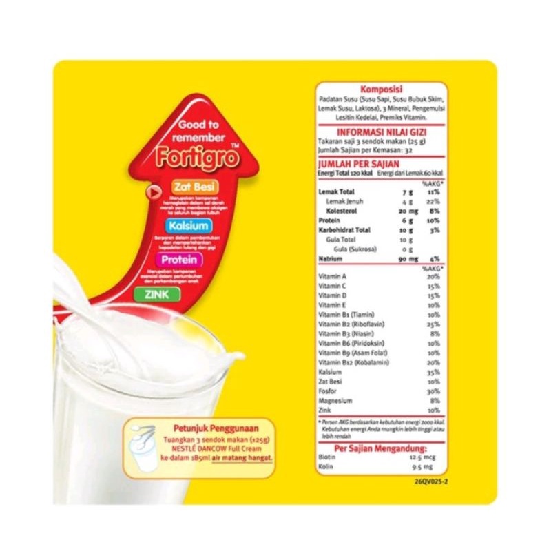 Dancow FortiGrow Full Cream 780gr Susu Anak Kaya Protein